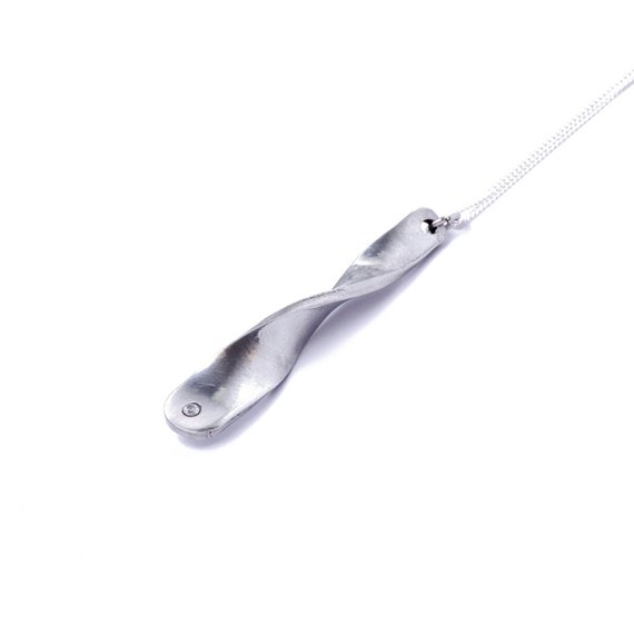 The pendant is 49mm x 8mm with a 2mm diamond set and is on an 18” sterling silver chain.